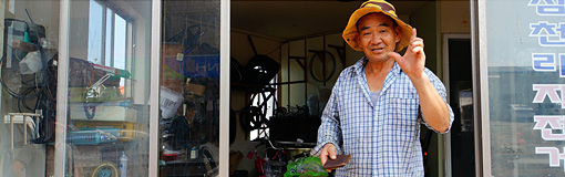 オチェンウォンとは5,000ウォンである。邦貨にして僅か450円。ほとんどチェーンリンクの部品代ぐらいなもので、ぼったくりどころか、とんでもない激安価格じゃないか。僕は親父さんを勘違いしていたようで、彼は単に口数少ない職人気質なのだった。