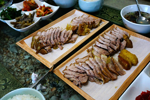 空港近くのホステルに宿を取った後は、夕暮れの市内をぶらついて、それから焼肉屋に入り、済州島名産の黒豚で小さな祝宴を開いた。