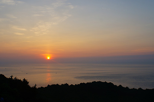 残念ながら水平線上には雲が停滞していて、すっきりとした御来光とは行かなかったけれど、日の出から5分もすると、この旅中さんざん僕を苦しめ続けた太陽がぐんぐんと野心的に高度をあげて姿を現した。