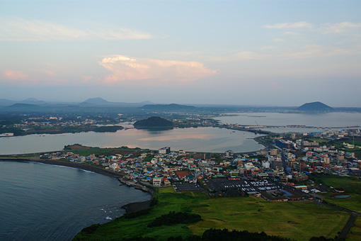 島の最東部・城山(ソンサン)に到着したのは結局夕方前だった。海に突き出た城山日出峰(ソンサンイルチュルボン)は10万年前の海底噴火でできあがり、火山島済州島を代表する景観の一つだ。