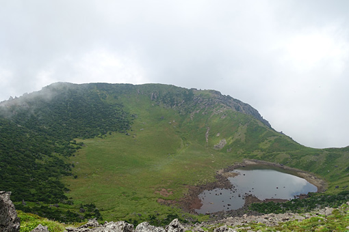 韓国最高峰の山頂の火口には白鹿潭という小さな池があった。かつて白鹿たちがこの池の水を飲みながら遊んだという伝説が残っている。