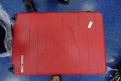 乗換のために荷物を一度受け取らなければならなかったので、ターンテーブルで荷物を待っていたのだが、出てきたスーツケースを見て驚いた。