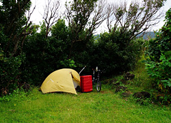 月明かりに浮かぶビロウヤシの海岸通り沿いに底土野営場はあった。今夜の寝床もテントである。八丈島のキャンプ場も青ヶ島同様に無料で利用できる。最長で10日間の予約を受け付けてくれ、事前予約をしておけば期間中いつでも使えるので、船の運行が読めない伊豆諸島の旅にとってこんなに心強いことはない。それでいて、きれいに整地され、立派なBBQ棟や水周り施設があって、無料とは思えないクオリティなのだから文句なしだ。