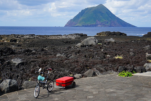 手頃なサイズ感でありながら、移り変わる風景の変化はとてもダイナミックだ。夢中でペダルを回していると、あっという間に島を半周し、昨夕、あおがしま丸が着岸した八重根港に到着した。
