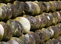 一方で、日本本土からは流刑となった者たちが島に本土の知恵や技術を伝えた。島の古くからの中心集落である資料館の周辺では、丸石を積み上げた玉石垣の見事な風除けが見られるが、これは流人たちが海から石を運び上げて築いたものだそうだ。黒潮に阻まれ、本土との交流もままならない島にあって、流人たちは本土文化をもたらす者として、温かく迎えられたという。このことは島の墓が流人と島人で区別がないことからも伺える。
