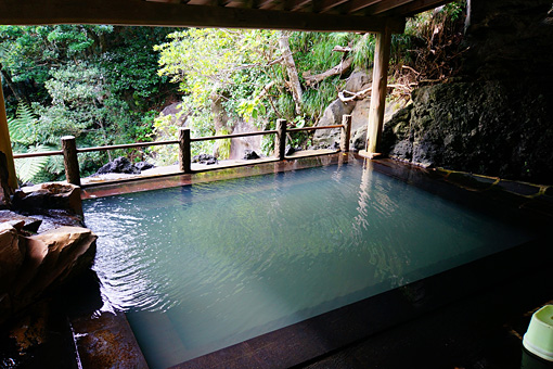 裏見ヶ滝温泉は亜熱帯の森の中にひっそりと佇む秘島といった佇まいだったのに対して、みはらしの湯は清々しい程に開放的な温泉だった。海岸線を見下ろす高台の上に、少し熱いくらいの塩梅で露天風呂が掘られている。こちらも夕方前という時間のせいか客足はまばらで、おかげでのんびりと楽しむことができた。