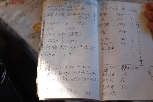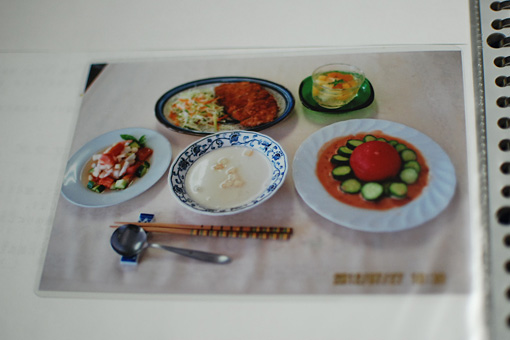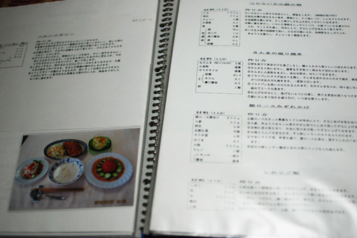 実はお料理教室も主催しており、自身で撮った写真とタイプしたレシピを見せて頂く。またも、「たいしたこと無いんですけどね」と言いながら見せて頂いたたいしたことあるレシピには、定番和食から目新しい創作料理までが惜しみなく載っていました。「以前ハワイで食べた、『丸ごとトマトのサラダ』のドレッシングが初めて頂くお味で、とってもおいしかったの。だからなんとか色と味から考えて、トマトのおいしいこの時期に再現してメニューにしてみたのよ」。