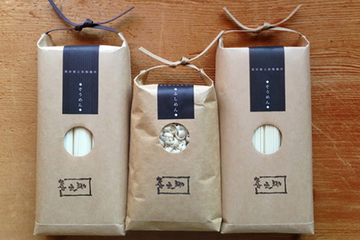 長い歴史を持ち、昔からのファンも多い真砂さんのそうめん。「パッケージがとてもスタイリッシュでおしゃれですね」と言うと、どうやら3年前にリニューアルしたよう。淳さんは、「親父は、『おいしいものを作っていたらお客さんは買ってくれる』と言っていたけれど、やっぱりこのご時世それだけじゃだめですよね」。また、当時流行り始めたSNSを使ってそうめんを干しているところをアップしたところ、とても反響があったのを受け、「そうか、僕らにとっての日常は普通の人にとっては非日常なのか」と、そこで気づいたのだと続けます。中身は昔と変わらぬスペシャルなもの、でももっと若い人にも手に取ってもらいたいとの思いで一新されたパッケージ。素敵だからと手に取って実際に食べてみると、驚きのコシの強さと絶妙な塩加減が癖になります。
