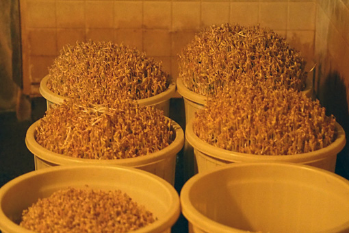 ところで、昔は麹屋のことを「もやしや」と呼んだそうですが、おもしろいことに森制麹所では、「もやし」も生産しています。薄暗い室内でメキメキと力強く育っていくもやし。これがまたシャッキシャキでおいしいんです。手作り味噌も評判の品。