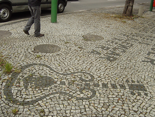 そんなカリオカの一人であるノエル・ホーザの生まれた街を見てみたいと、レコーディングの合間をぬって下町、ヴィラ・イザベルに出かけてみた。彼は良くバーで作曲をしたらしい、その雰囲気をそのまま再現したブロンズ像が街の目抜き通りに建っていた。ふとその像に続く歩道をみると、なんと舗装に五線譜がちりばめられている。良く見てみると彼の曲だった。それも一曲ではなく何曲かが歩道を彩っている。白と黒の歩道石が丁寧に組まれていて、その手間からもカリオカ達が彼をいかに愛し、尊敬しているかがわかる。