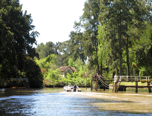 デルタの入り口ティグレには1時間ほどをかけて電車で来ました。車でブエノスアイレス市内から高速道路をつかえば3、40分で来られるようです。このデルタ地帯はとても広く、今日、我々が1日かけて回る程度では入り口周辺しか見られないようです。一帯は豊かなラプラタ川の水をたたえ、観光船やランチャと呼ばれる定期船が行き来する水郷地帯でブエノスアイレスの人たちが週末に気軽に訪れる観光地兼避暑地らしいです。