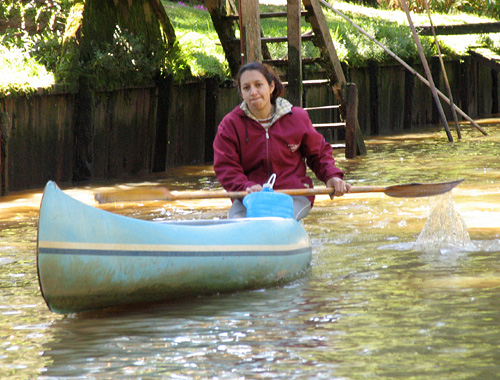 カヌーを使う人も。飲み水を運んでいるのでしょうか、綺麗なポリタンクが見えます