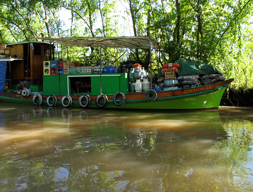 物資を満載した移動商店。各家々の桟橋に着けて商売しているようです町のコンビニエンス・ショップです