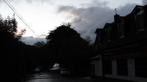 出かけようとしたとたん、今度はスプレーでなく、シャワーと呼ばれる雨が降り始めた。アイルランドの天候は海洋性気候でイギリスと同じように変わりやすい。少し待てばやむと思ったが時間がないので出かけることにした。前回7年前にBGM4の収録に来たときは、11日間滞在してほとんど雨は降らなかった。むしろ雲一つなく晴れすぎていて撮影に困った経験がある。今回は天候がくるくると変わりそうなのでスコットランドらしい写真が撮れる期待が湧いてきた。ケルトというとどうしても氷雨降るヒースの草原を流れる川と呼べないほどの細流、強風によって曲がってしまったオークや松の樹木を想像してしまう。音楽は比較的計画に沿った進行ができるのだが、写真はそうはいかない場合が多い。今回は良い旅になるような予感がよぎる雨だった。