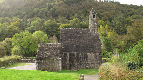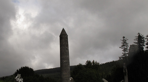 グレンダーロッホは7世紀から12世紀に栄えた初期キリスト教の聖者ケビンによって修道院として建てられました。ヨーロッパ混乱のこの時期にアイルランドだけは平和が続きました。宗教や文芸に対して高い能力を持つケルト人達は修道院を中心に何世紀にもわたって創造的な活動をしました。ケルト人の文化であるラ・ティーヌ様式はさらに発展し、ケルズの書やアーダの聖餐杯、タラのブローチなどケルト文化の秀作を数多く生みだしたのもこの時期です。またケルト人聖職者達はキリスト教やケルトの文化に対しても多くの研究を行い素晴らしい成果を書き残しました。この活動は国外においても行われ、アイルランドは「聖者と学者の島」と呼ばれ多くの聖職者を集める聖地になりました。