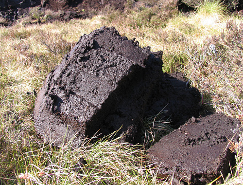 この泥炭は昔から乾かして燃料として使ったようです。柔らかい火なので暖房やウイスキーの蒸留に使われおり、その独特の香りが特徴になっているスコッチウイスキーもあります。最近は機械化されているようですが、昔はそれぞれの家ごとに手で堀り、燃料に利用していました。