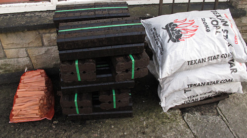 写真真ん中が、泥炭を固めて燃料キューブに加工した物