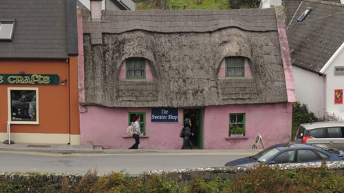 途中にはほんの数十軒が纏まって村の形態になっているところがいくつもありました。このセーター・ショップもそのような村の一つにありました。観光客用だと思いますが、アラン・セーターで有名なアラン島も近いこのエリアではハンドクラフトのしっかりしたセーターを売るお店が多く、これも日本で買うよりも圧倒的に安いです。ただ本物のアラン・セーターは良い品で10万円ほどするようで木の箱に入っているとNaokoさんが言っていました。やはりハンドクラフト品は高価ですが一生に一枚くらいは持っていても良いと思いました。このショップも今回は時間がないので入らずそのまま車に乗ってアイルランド語でAillte an Mhothair「破滅の崖」と呼ばれるモハーの断崖に向かいました。