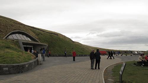 そんな思いとは裏腹にこのモハー断崖は年間100万人近くを集めるアイルランドの中でも有名な観光地です。上の写真はビジターセンター入り口で建物は芝に覆われています。風景を十分に楽しめるよう余計な建造物は一切なく、まわりの風景に同化するように配慮されています。体験センターも地熱冷暖房、太陽光発電、下水リサイクルという管理の仕方で日本の観光地も見習うべきところが多いと感じました。この日は閑散としており撮影には最適な環境でした。
