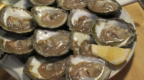 今日も移動しながらで昼食はガソリンスタンドで買ったサンドイッチ。せっかくスタジオ飯から抜け出たのに、またもやサンドイッチ。少しかわいそうに思ったのか、Naokoさんが選んでくださったのは瀟洒(しょうしゃ)なたたずまいのレストランでした。実はこのお店1985年に天皇、皇后陛下が皇太子時代にアイルランドを訪問されたときに立ち寄ったレストランだそうです。玄関を入ると右の壁に額装された若き日の天皇、皇后陛下の写真が何枚か飾ってありました。裏話ですが、この店が最高級と言うのではなく、急に決まったご訪問に対応できる店がこの店しかなかったようです。中に入ってみるとゴールウエイ周辺から来たような地元のお客様で満員。予約してあった席に案内されるとさっそく牡蠣のメニューが出てきました。