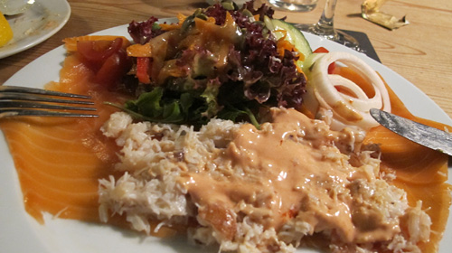 蟹肉とスモークサーモンの料理