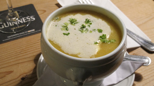 牡蠣は各人2、3個食べて、あとはそれぞれ好きなメニューを注文しました。久しぶりのシーフードに大満足。日本では簡単に食べられるシーフードも海外だとなかなか食べる機会が少なく、どうしても肉中心になってしまいます。その中でもアイルランドは島国という事もあり美味しいシーフードが食べられるので助かります。全員大満足。特にスープが美味しかったので、またもや7年前を思い出してしまいました。繁華街から少し離れたレストランで地元の方々の賑わいを拝見しながら食べる食事は、どこで食べても美味しいものだとつくづく思います。日本でもそうですが観光用の店が繁華街に増え、良いレストランを探すのが大変な時代になりました。今回のように長くアイルランドに住んでいて、食べることが大好きなNaokoさんがいてくれたおかげで食事には困らずに仕事ができたと思います。食は文化なり。最近の日本もなかなか安くて美味しい料理店が少なくなったと思います。以前飲食業の成功者の方にうかがいましたが、一般的に飲食業と一言でいわれるが、飲は虚業、食は実業、食はまじめに美味しい料理を作り続けなければ存続できない難しい職業である。僕は飲業で成功しただけだからたいしたことないとおっしゃっていたのが印象的でした。創業1797年のこの店のように200年を越える家業の継続は大変な努力の賜だと思います。アイルランドは音楽と同じように大変な歴史を持っているお店が沢山存続しています。これも今を生きる伝統を大切にする気風と真面目な気質が創るのかもしれないと、ホテルに向かう車の中でうらやましく思いました。