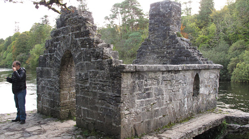 ジョン・ウエイン主演の名作「静かなる男」の撮影地として有名な、コング村に行くことになりました。ゴールウエイから北上し、マスク湖とコリブ湖という大きな湖に挟まれた小さな村がコングです。人口200人足らずの本当に小さな村の修道院をめざしました。コング修道院は今から1400年ほど昔に建てられた修道院ですが、現在は遺跡として残されています。ケルトの面影が強く残る修道院で、ケルティッククロスやハイクロスがあちらこちらに見られます。もともとは村や農家を撮影するために北に向かったのですが、興味深い場所があるというので連れてこられたのがコング修道院でした。その興味深いモノというのが、この写真にあるモンクス・フィッシング・ハウスです。