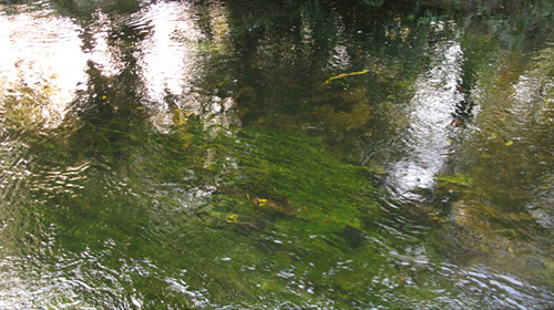 キンギョ藻が繁茂し、アイルランドの東側とは違い、ホワイト・ウオーターと呼ばれる透明な水が流れ、水深はたぶん1メートル以上あるように思いました。