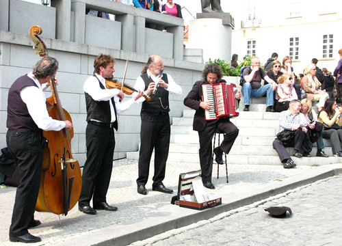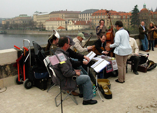 時差を調整するために初日はイジー・ローハンさんとの打合せ以外なにもないので、時間まで市内を散歩することにしました。ぶらぶらと散策をしていますと、街のあちらこちらにストリートパフォーマンサー達が演奏をしているのが見えました。海外ではよく見かける風景なのですが、近づいてみると普通ロックやジャズを演奏していることが多いのですが、ここプラハではクラシック音楽であることを知りとても驚きました。
