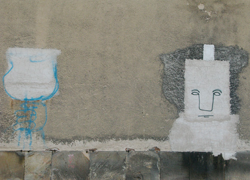 市民監視用扉の塞がれた跡に書かれたストリート・アート(右の絵)