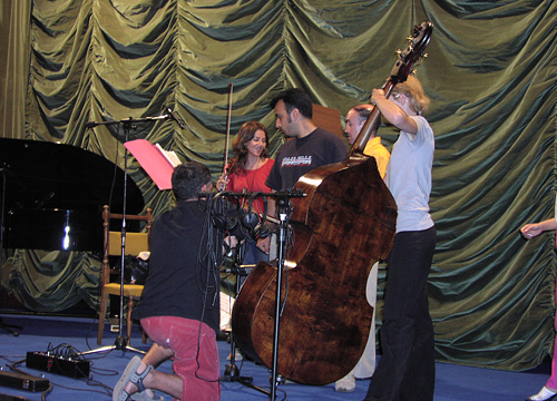 ミュージシャン達が集まり、音のチェックが始まりました。通常のレコーディングではトラック・ダウン時に音の調整がしやすいように、各楽器と楽器の音が直接かぶらないように配置や壁など工夫をするのですが、今回はライブレコーディングのようなスタイルで収録する事になりました。