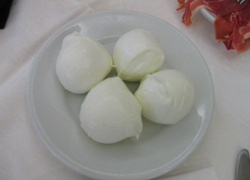 だいぶ前から、日本でも袋入りのフレッシュなモッツアレラが売られていますが、本来は日本の豆腐と同じで朝早く作って昼までには売ってしまうと聞きました。新鮮なものほど柔らかくふくよかな香りがします。ナポリではどこでもこの形で出してくれました。気に入ってしまい毎日食べていました。
