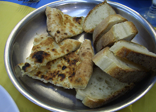 待っている間にパンが出てきました。それもステンレスの皿にこのような形です。
