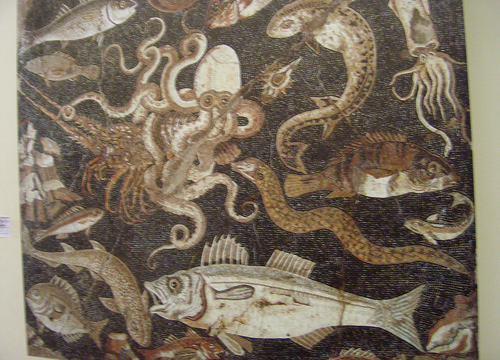 ポンペイの遺跡から出てきたセラミックのモザイク壁画