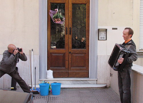 ミュージシャン達がスタジオ以外で陽気なのはどこの国でも一緒ですが、今回のナポリはミュージシャン達の気さくさに驚きました。音楽家はとかく自分が音楽家であるという特別な意識が前に出がちですが、ナポリのミュージシャンは肩にまったく力が入っていないように見えました。スタッフにコーヒーを運んでくれたり、スタッフをねぎらっておどけて見せたり、参加しているミュージシャンもスタッフもすべて仲間という感じで接します。もちろんスタジオでは自分の音楽を表現する真面目な姿勢は他の国と共通ですがこの違いはどこから来るのだろうと思いました。カンツォーネ・ナポレターナの民衆と一緒に発展してきた歴史とその分野で認められている自信や人々が大衆音楽を大切にしてくれている文化などの表れでしょうか。シーラに聞けば、何故そんなことを聞くのかという顔をして「ナポリの人は皆音楽が好き、私はただ歌うのがうまい、楽器がうまいだけ。だから気負う必要はない」そう答えが返ってくる気がしました。音楽が生活の中に空気のように入り込んでいるナポリ、また一つ住みたい町が増えてしまいました。