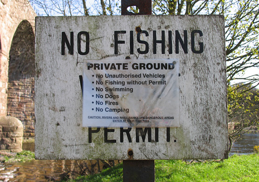 日本では周辺の土地を所有していても、川と河原敷き周辺は国交省か環境省の所有(国有)となります。釣りをしたい場合、遊漁料を払えば基本的にどこでも釣りは出来ます。また漁協が無い場合は立ち入り禁止区域以外は自由に釣りはできます。ところがイギリス。スコットランドでは川に面している土地の所有者が川の使用権も持っています。ですのでこういった形が可能です。パブリックな場所以外で釣りをするためには土地所有者の許可が必要です。