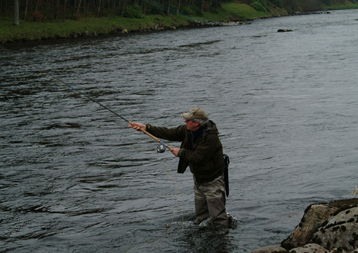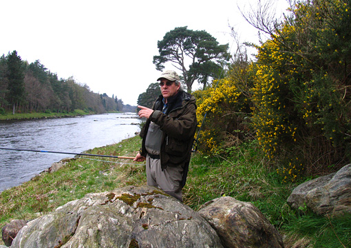 彼は毎週釣りに来ているようです。仕事は会社経営、大の釣り好きでこのスコットランドを愛しているとおっしゃっていました。彼のビットでは年間80本ほどのアトランティック・サーモンが釣れるようです。釣り方は地元流のスペイ・キャスティングと言われる釣法で、この釣り方がいちばん効率が良く、この川とアトランティック・サーモンに適した、楽しい釣りだとも話してくれました。