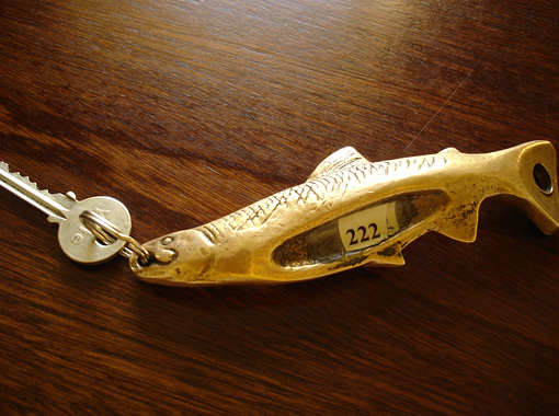 これが渡された鍵です。アトランティック・サーモンを模したブラス製です