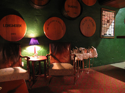 バーに行ってみると壁一面にスコッチが並んでいました。そればかりかHOTELのあちらこちらに多くのスコッチが並んでいます。その数520種類を優に超えているとの話でした。酒豪、開高健さんが泊まりたかった訳が少し理解できました。地元のシングルモルトを初めほとんどすべてのスコッチ・ウィスキーが揃っているそうです。