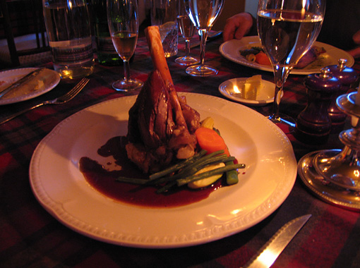 ディナーの一例ですがラムの骨付きローストです。しっかりとした量と大変美味しい肉とソースでした。