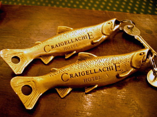 ふたつのホテルに共通するのは、予約がとても取りにくいということと、常連の長逗留がとても多いという事でした。長く逗留するスタイルのホテルはこれで良いと思いました。それは、フロントはチェックイン、チェック・アウトとインフォメーションをするだけの役目ですので、出入りする度に気を使うような、アメリカ型の大型ホテルに共通する、客を威圧する巨大さと緊張感はいらないのでしょう。必要な時に用が足せて、それ以外は気にならない存在でいてくれた方が滞在者としては居心地が良いに決まっています。クレイゲラヒーの顧客を思う合理性にとても感心しました。もらった鍵はアトランティック・サーモンの形を模したずっしりと重いブラス製でした。ポケットに入れるとズボンが下がりそうです。後で計ったら250gもありました。後ほど書きますがこれにも意味がありました。