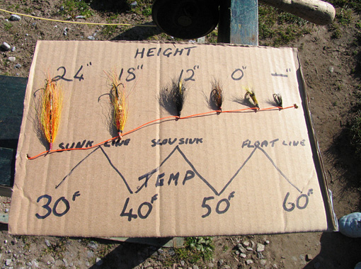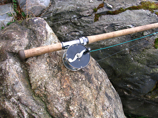 最初に日本にこのスタイルが入ってきた当時はグレン(谷)という名前から、日本のように切り立った岸など障害物が多い谷を想像したようです。それらの障害物をよけるために開発されたキャスティング(投げ方)だと解説されていました。フライ・フィッシングは通常1gにも満たない軽いフライ(毛針)を遠くに飛ばすため、ライン(カラーのビニールコーティングされた糸)と呼ばれる太い糸に結び(上記写真では白い紐のように見えます)、このラインの重さで竿を曲げ、その反動で前方にフライを飛ばす釣り方です。そのためにどうしても後ろにラインを飛ばし、その勢いで弓なりになった竿の反復力を使って前方に毛針を飛ばします。