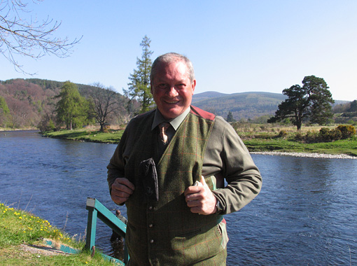 小屋に入ってお話しをうかがう事が出来ました。部屋の大きな窓からはスペイ川が見渡せる明るい部屋でした。手書きラベルのモルトが数本置いてありマッカランの川という感じがとてもしました。ギリーさんの着ていたツイードの話をうかがったところ、ツイードの柄や配色、線の太さなどでそれぞれの家を表し、日本で言えば家紋と同じ意味を持つ役目をしていると話してくれました。