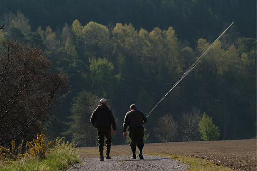 また、水深があり平均した深さのあるスペイ川ではアトランティック・サーモンは下流から留まることなく遡上してきます。後ろにラインを飛ばしている間にも目の前を通り過ぎてしまうかも知れません。出来るだけ長く水中にフライを入れておくため、効率的でスピーディな実践型の方法としてスペイ・キャスティングが生まれました。また現地の釣り人はかなり流心の近くまで川に立ち込みますので、それほど起伏のないグレンの地形と相まって、後ろを気にする必要は全くなかったのです。様々な流儀が日本に入ってきますが、現地に行ってみると間違った解釈が多いことに驚かされます。