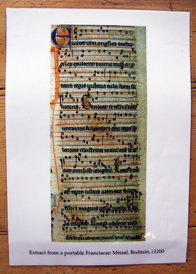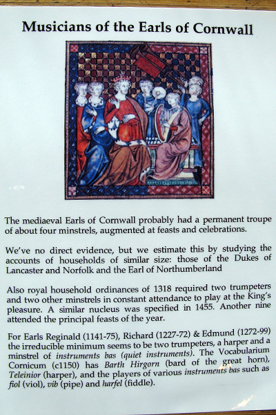 特に素晴らしかったのは彼が集めた音楽的資料の豊富さでした。最初に見せていただいた資料はコーンウォールの中世の貴族は四人の恒久的な楽団を有していた。編成は二つの管楽器と他の楽器を持つ吟遊詩人。また古い時代にはハープと管楽器、パイプ、フィドルなど様々な楽器の編成があったことが資料から考えられると言うお話しをうかがいました。今までスコットランドとアイルランドではここまで歴史的な事実を追いかけていなかったのでとても興味深い思いがしました。
