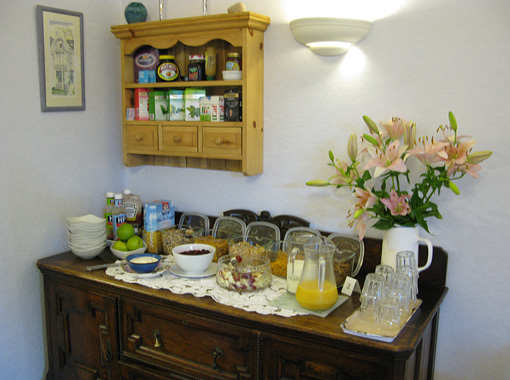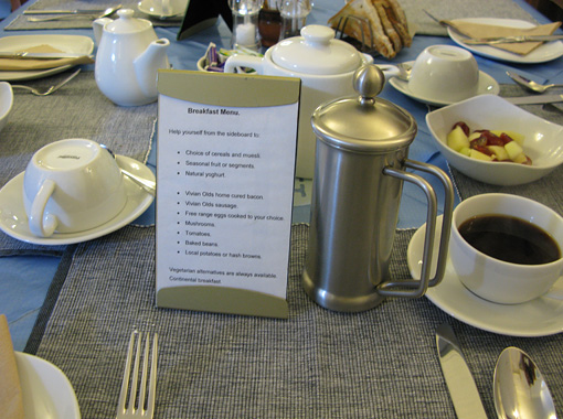 良いB&Bを見つけられると、通常のホテルでは体験しにくい、高いホスピタリティ・サービスがとてもてごろな費用で受けることができます。今回は真理子さんの良く知っているB&Bで、ご推薦でしたのでとても楽しみにしていました。写真は今回お世話になったB&Bの朝のテーブルです。パンや飲み物はセルフ・サービスですが、卵やハム、ソーセージ料理などは一人ずつ好みを聞いてから出してくれます。その丁寧さが私はとても気に入りました。B&Bは個人経営が多いのでオーナーの趣味が反映されます。自分と合ったセンスのB&Bを選ぶことが大切のようです。今回のように信頼出来る方の紹介が一番良いように思います。