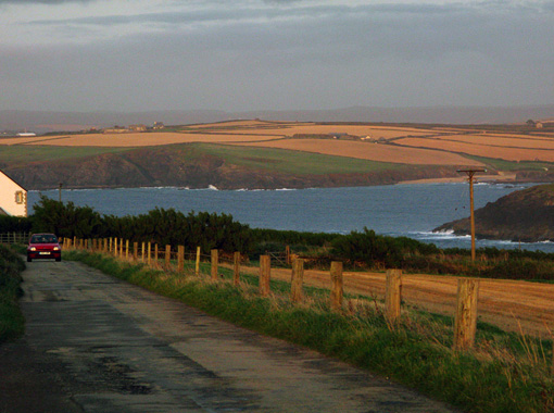 生け垣の間を走っていると、頭の中に風景が浮かびました。それは昔の三浦半島を走っていた時の風景です。コーンウォールが三浦半島の風景ととても似ている事に気づきました。そのような話を同乗のスタッフと話をしながら進んでいくと、また海の見える丘に出ました。道路の左下には大西洋が見えます。大海原から海岸近くに眼をやると黒い点が海中に見え隠れしています。どうやら、お目当てのサーファーを発見したようです。すぐさまVanは脇道に入りサーファーを目指しました。