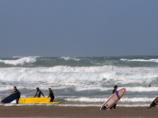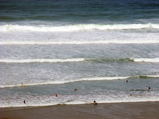 浜辺まで行ってみると結構良い波が打ち寄せていました。女性も含めて多くのサーファーが思い思いのスタイルでサーフィンに興じていました。サーフィン映画ビッグウエンズデーに出てくるようなロングボードの強者達もいます。