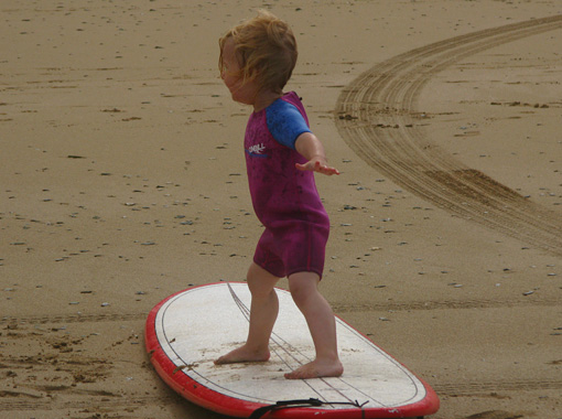 ふと、目が止まると4才くらいの未来のチャンピオンもランディングの練習していました。お父さんもウエットスーツを着ていましたので素敵な親子サーファーなのかも知れません。