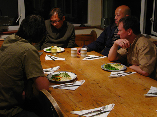 スタジオに到着して荷物をほどいたら、もう夕食の時間になっていました。さっそく、ロンドンから駆けつけてくれたマットさんとディナー・ミーティングです。豊富な経験を持つマットさんは事前に送った音源で無印良品BGMの企画意図を理解していてくださったので、とてもスムーズなミーティングでした。日本にも優れたサウンド・エンジニアが数多くおりますが一流のエンジニアはどこの国でも一緒だなといつも思います。それは、シンプルに出音に忠実にという一番簡単なことが一番難しいレコーディング。このことを簡単にできるエンジニアが最高のエンジニアです。